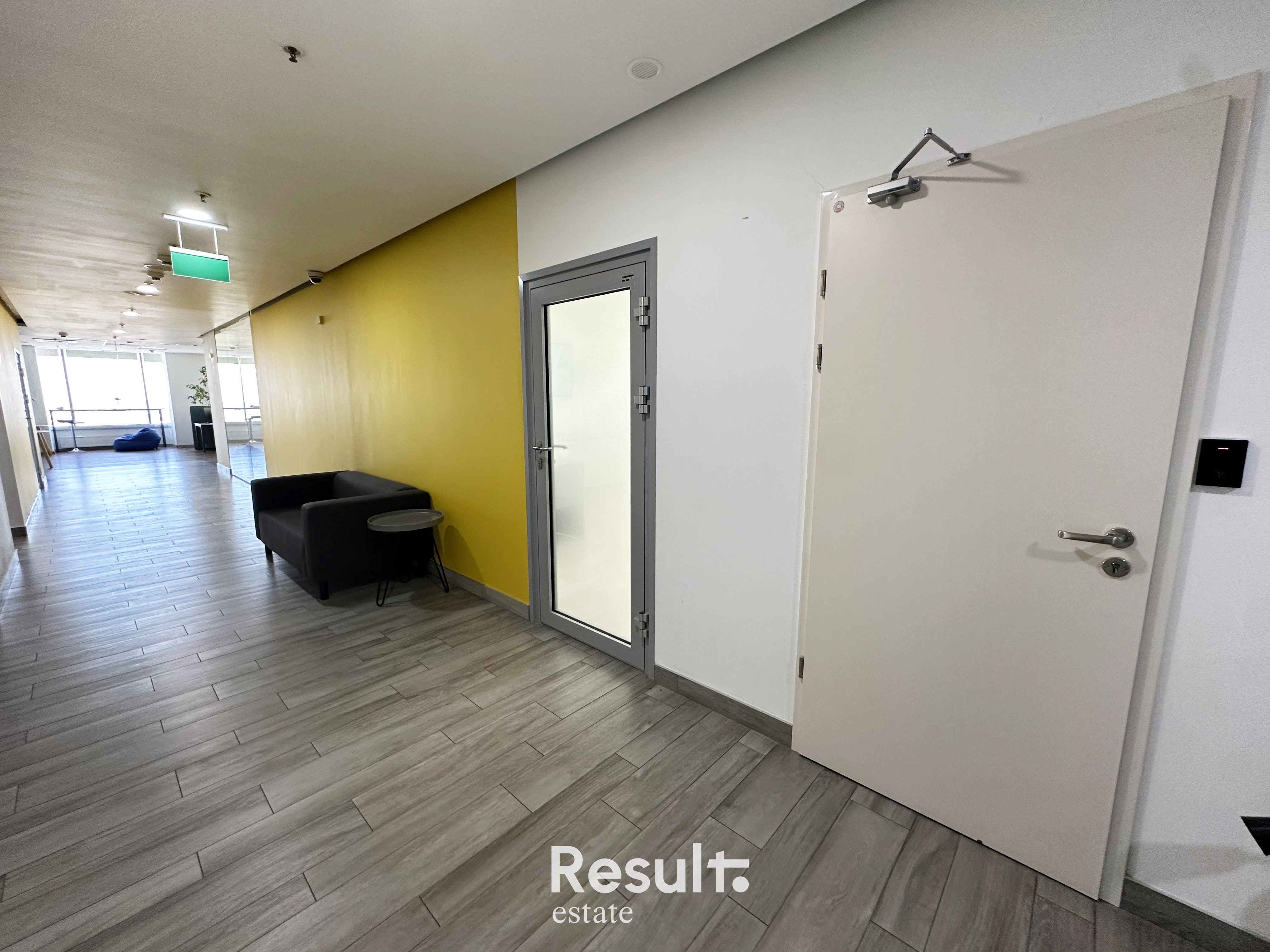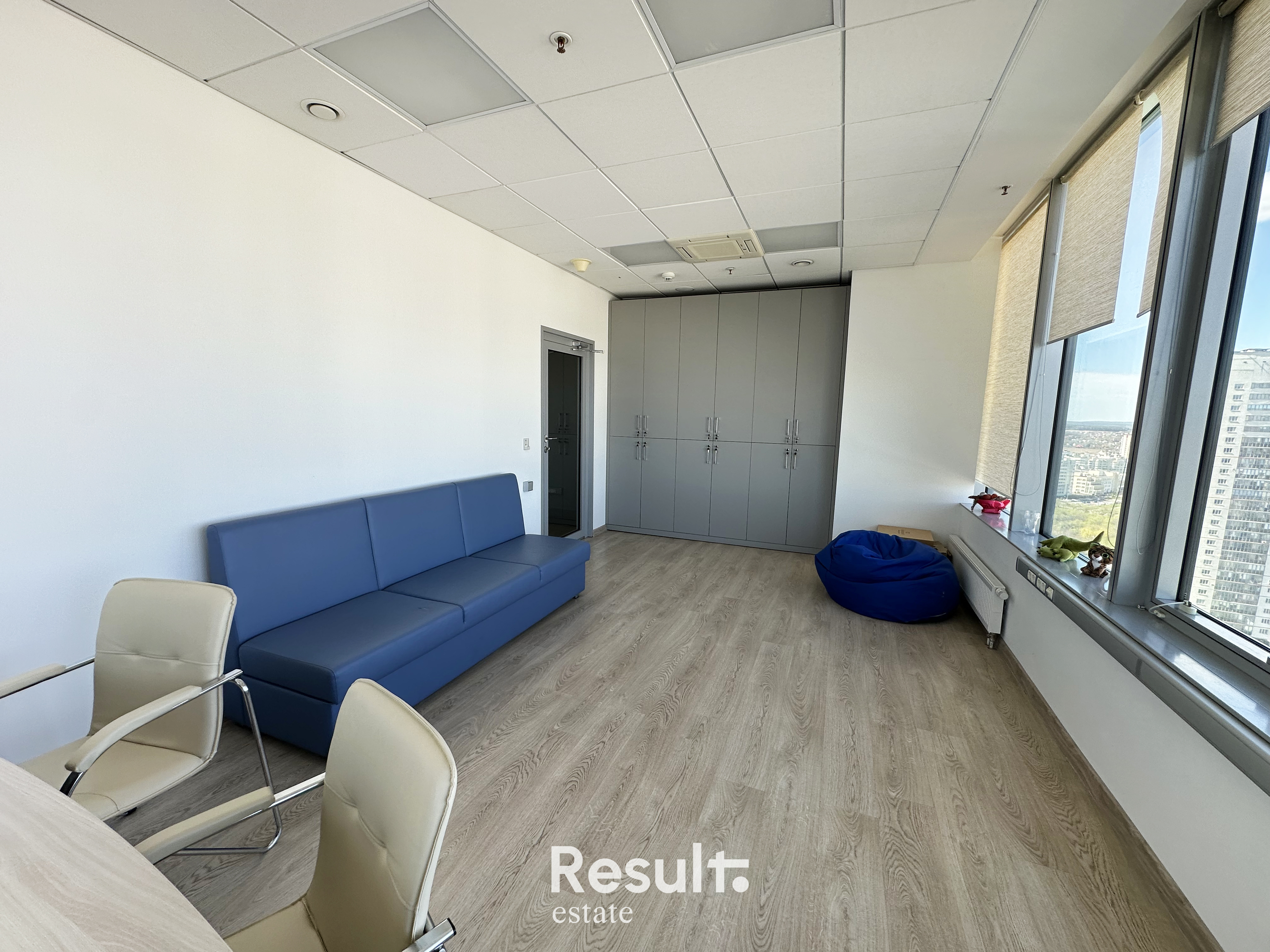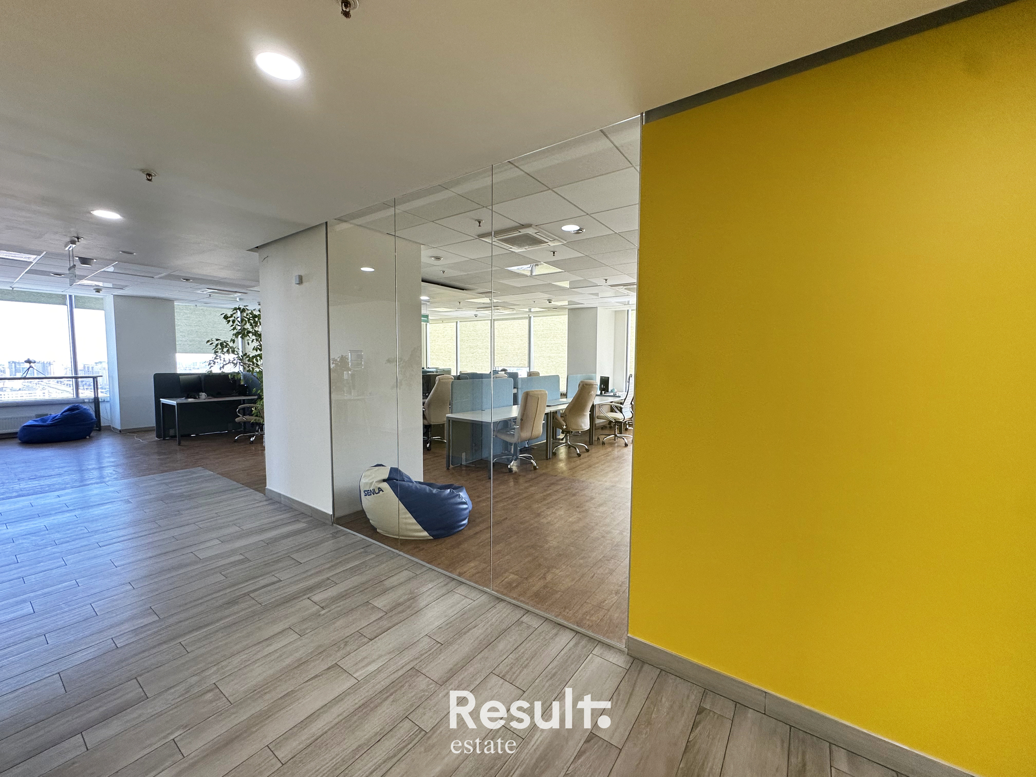 Высокая степень естественного освещения, что делает офис светлым и уютным.