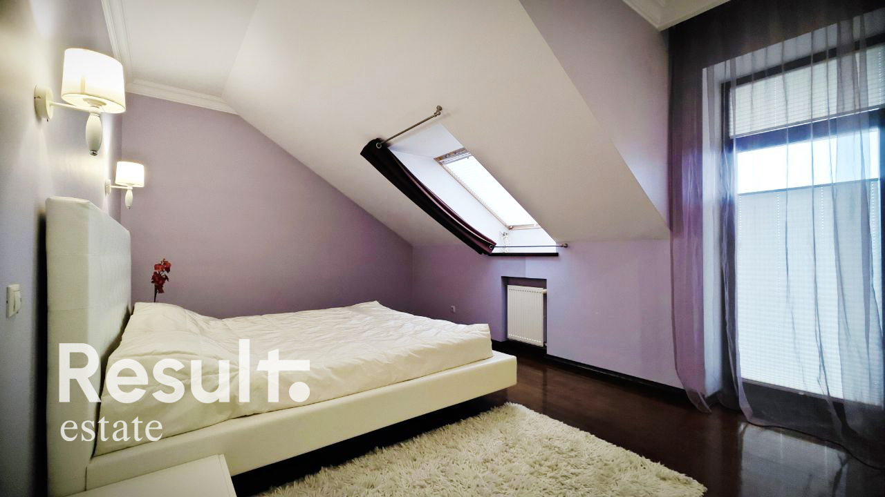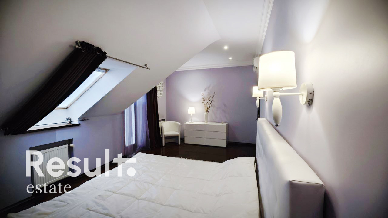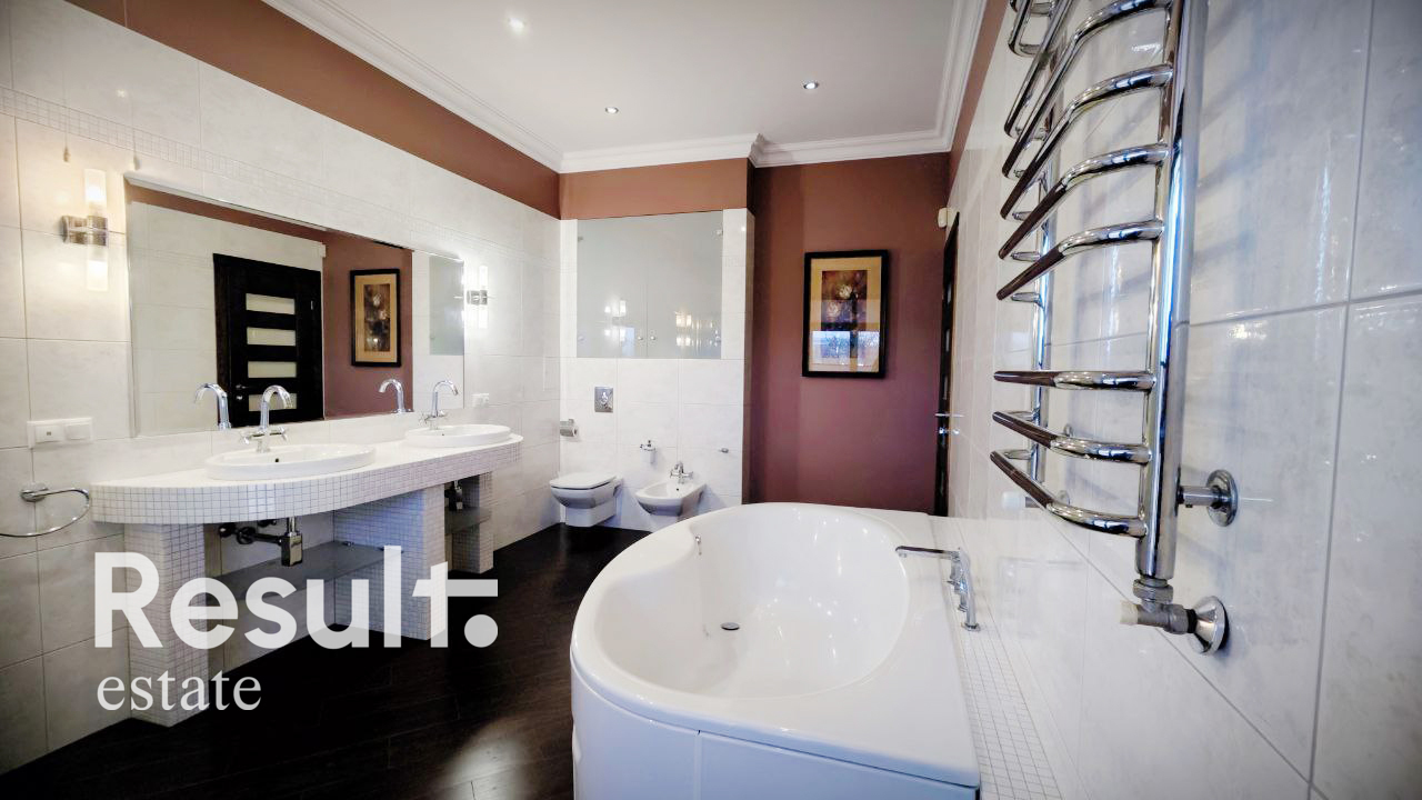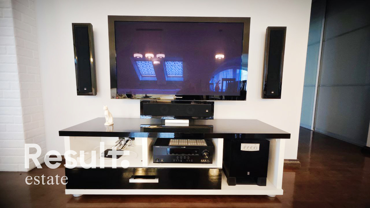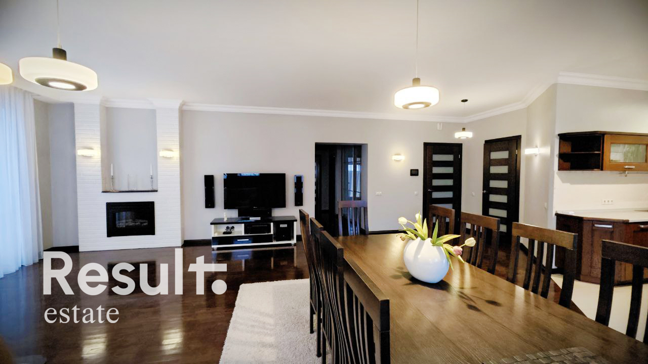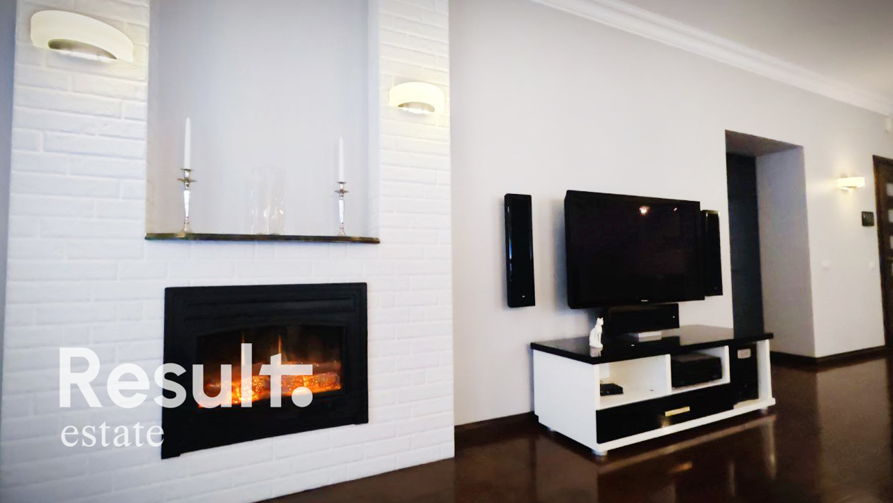 Камин, два кондиционера, система очистки воды, двухконтурный котел, сигнализация с датчиками движения, видеодомофон.