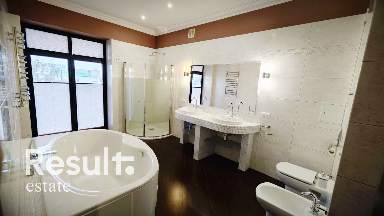 Установлены двухкамерные окна ПВХ в французском стиле, на полу уложен паркет из дуба, испанская плитка с подогревом, межкомнатные двери из дуба.