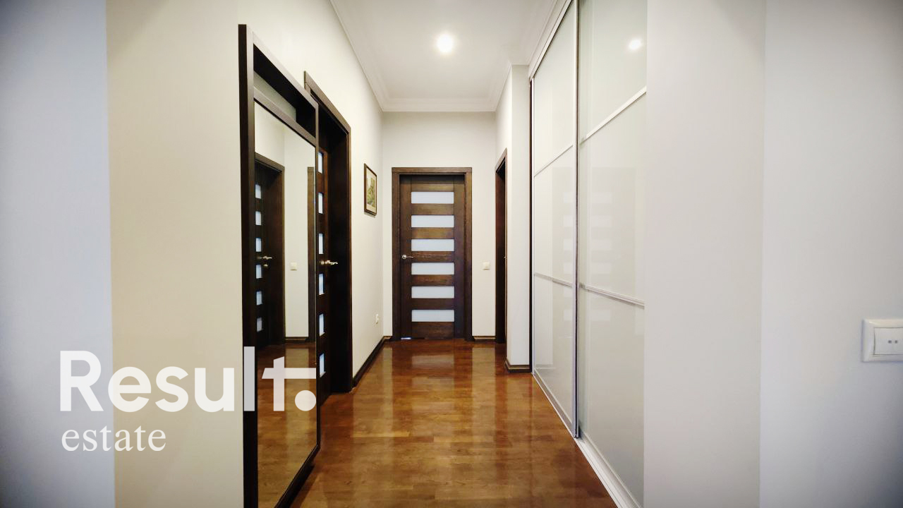 Квартира площадью 132.6 м.кв., просторная гостиная совмещена с кухней и две изолированных комнаты, есть гардеробная комната. Санузел совмещен, выход на лоджию из санузла и жилой комнаты; также 2 балкона с кованным ограждением. Высокие потолки 2.9 м.