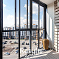 Окна квартиры выходят на две стороны, что обеспечивает отличную инсоляцию и сквозное проветривание. Просторный балкон открывает потрясающий вид на закаты — это пространство становится продолжением гостиной и местом для отдыха с чашкой кофе или книгой.